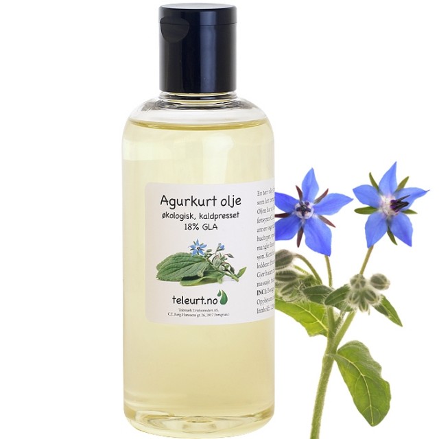 PRODUKTBESKRIVELSE Agurkurtoljen fremstilles fra agurkurt frøene ved kaldpressing. Oljen er tørr, mild og har en behagelig smak. Agurkurtoljen har et høyere innhold av gammalinolensyre (GLA) enn noen annen planteolje. GLA er en Omega-6 fettsyre eller en såkalt essensiell fettsyre som ikke produseres i kroppen vår, men som vi får via maten vi spiser. Essensielle fettsyrer er viktige for hjernefunksjonen og en rekke andre kroppsfunksjoner.