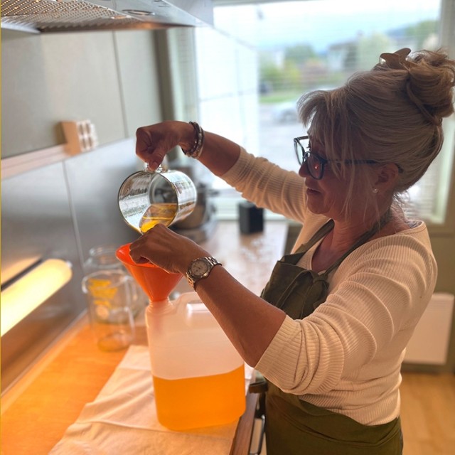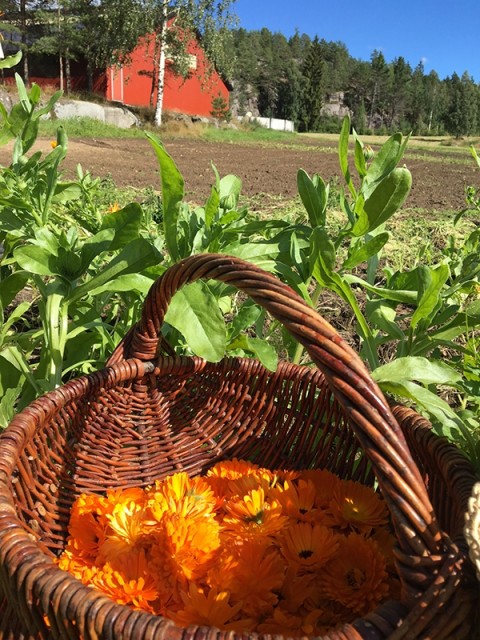 Vi er stolte over dette produktet som er et samarbeid med økobonde Wenche Straume på Strømland gård i Drangdal. Der har vi fått dyrket de mest fantastiske ringblomster - som igjen har blitt til olje her hos oss. Her har vi brukt beste kvalitet kaldpressede oljer når vi har laget uttrekket.
